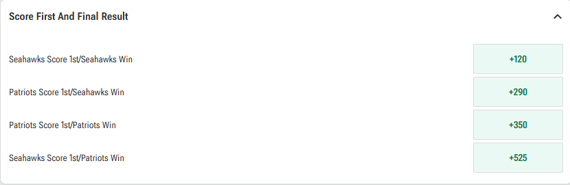 A clue that we weren’t going to find much value in those margin props was that it was a multi-way market. Multi-way game prop markets hold more, which makes them harder to beat. Consider this one, which you can find at several books: Which team will score first, and what will the final result be?
